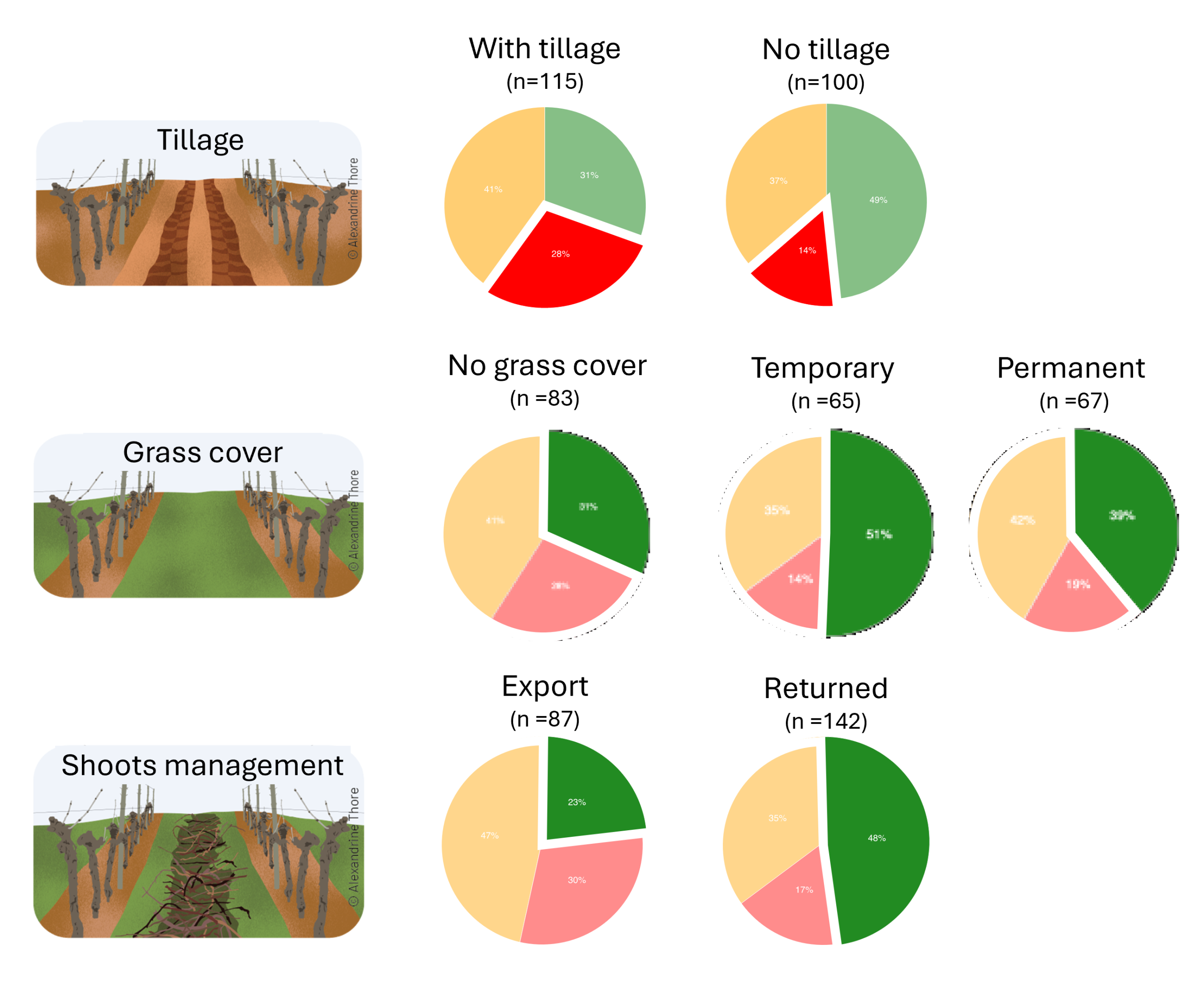 - In contrast, grass cover practices prove to be rather beneficial, with an effect that is all the more pronounced when the grass cover is perennial and diverse.
