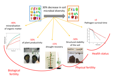 All these practices lead to the destruction of soil habitats for microorganisms and/or the depletion of nutrient resources (a decline in the quantity and quality of soil organic carbon) and, in some cases, to toxic contamination for microorganisms (heavy metals, pesticides, antibiotics, PAHs, etc.).