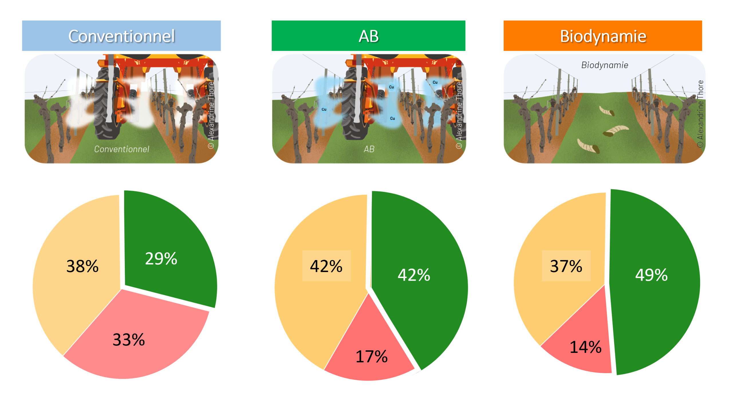 This trend, which is robust thanks to the representativeness of the different production methods within the network of winegrowers established (see Focus Sols de terroirs viticoles), reinforces the idea that agroecological practices sustainably promote soil life (Figure 10).