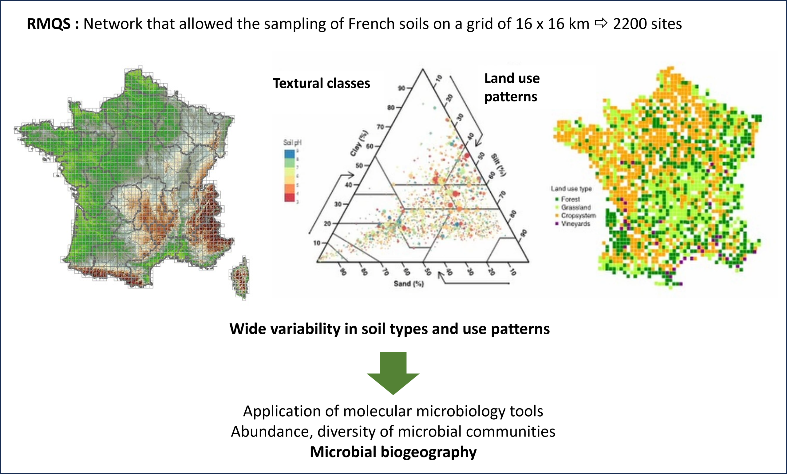 In summary, the RMQS is a unique observatory that enables the long-term monitoring of changes in French soil quality, the anticipation of soil degradation, and the informing of soil protection policies.