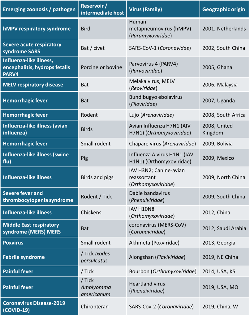 - Table 1. Viral zoonoses that have emerged in the 21st century