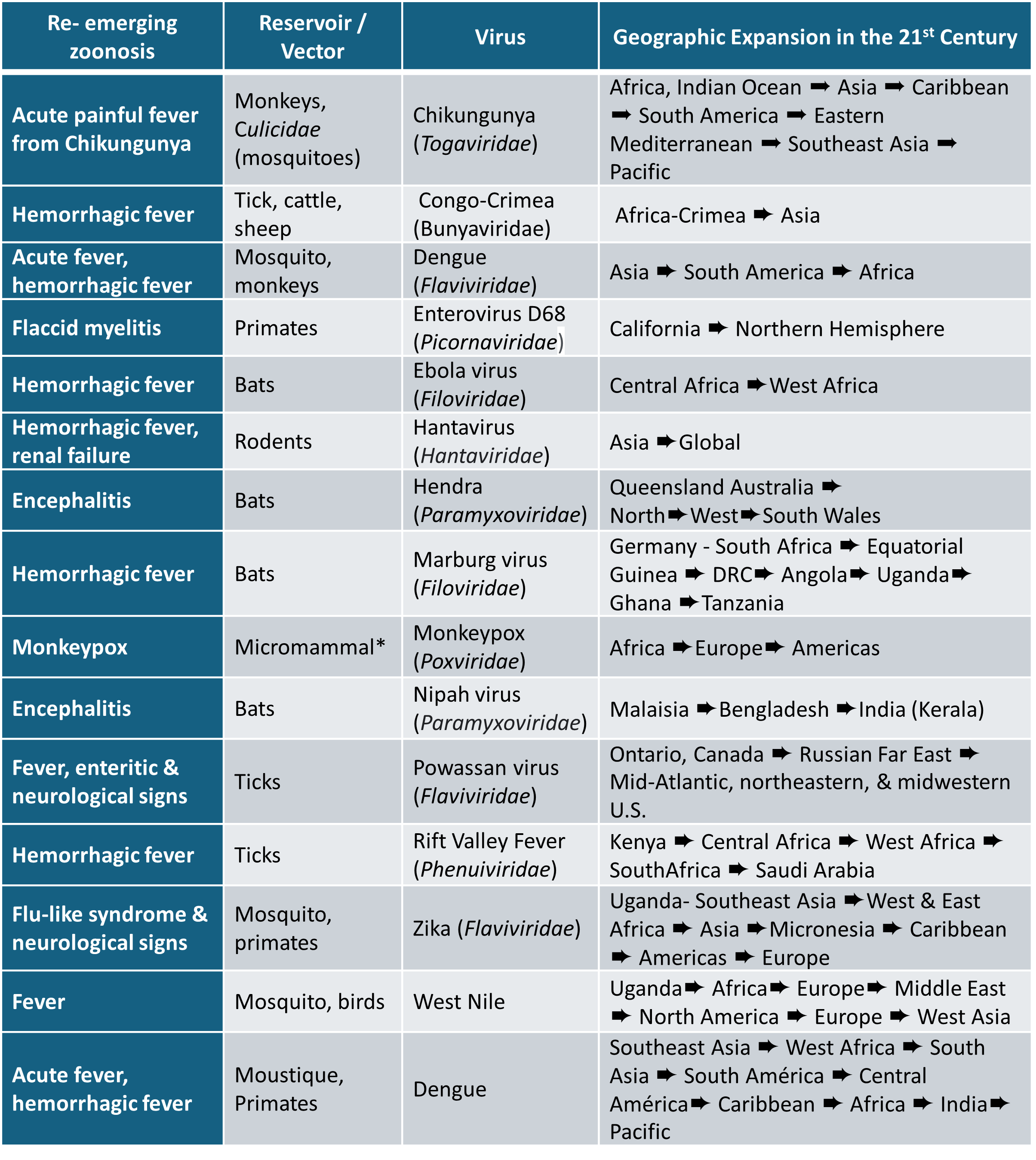 - Table 2. Viral zoonoses that have re-emerged in the 21st century with an unparalleled geographical extension