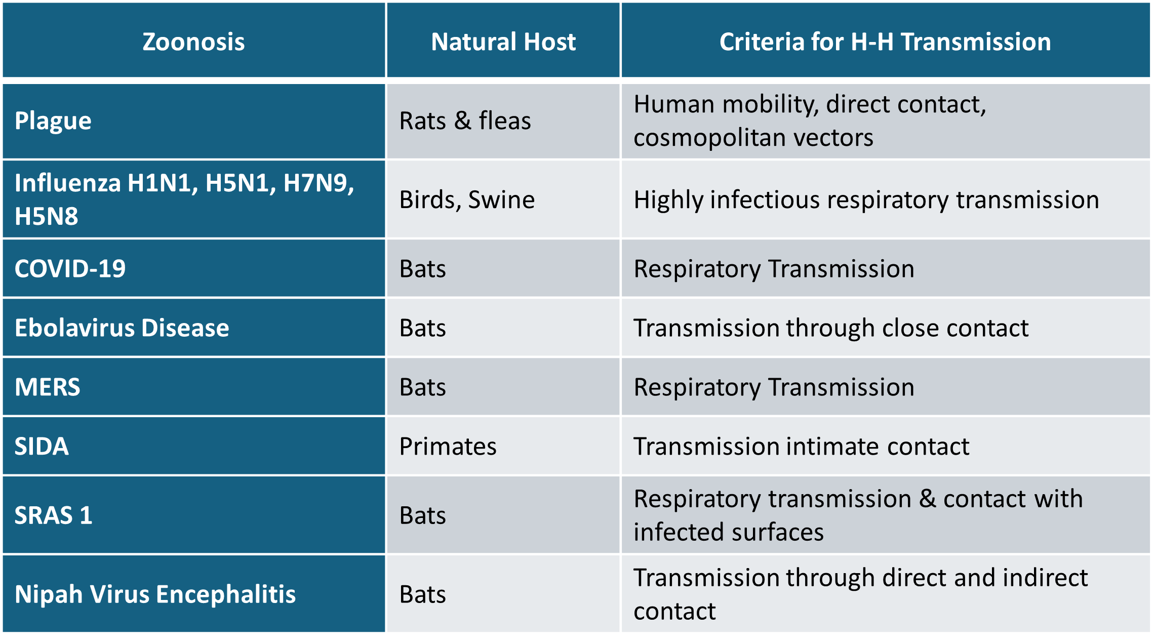 - Table 4. Zoonoses with H-H Transmission (Vector or Not?) and Proven Pandemic Potential