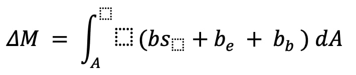 冰川物质平衡是跨越冰川边界的所有物质通量的积分。以千克或立方米水当量(w.e.)表示的物质平衡∆M,其定义如下[36]: